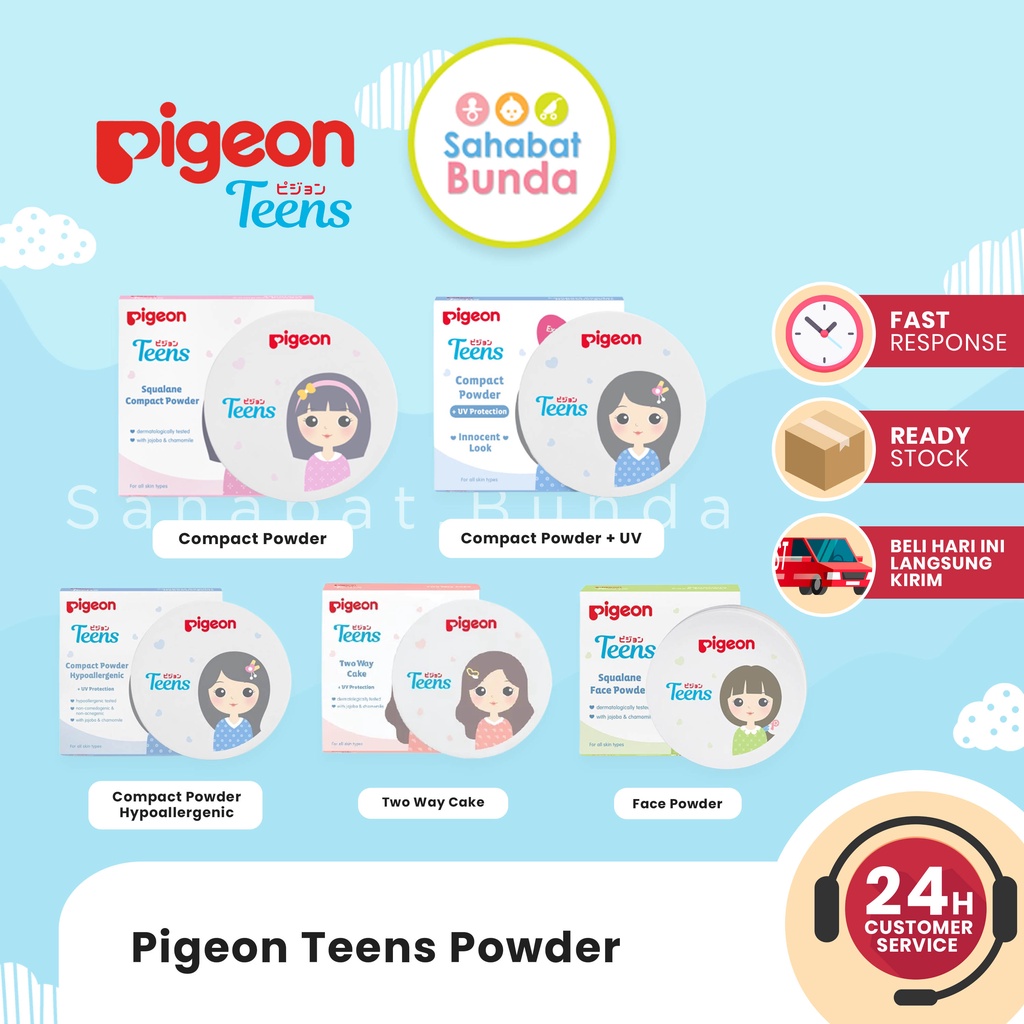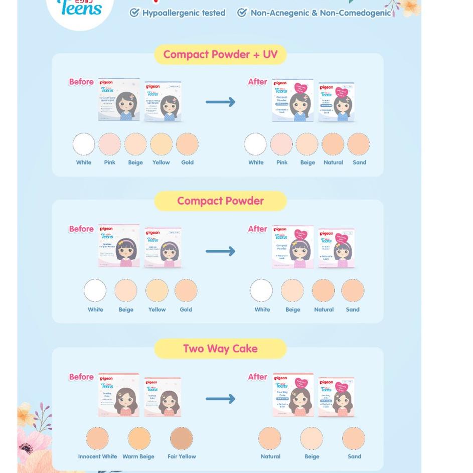 - PIGEON Teens - Compact Powder Face Powder Hypoallergenic Two Way Cake Bedak Padat Tabur Anak Remaja