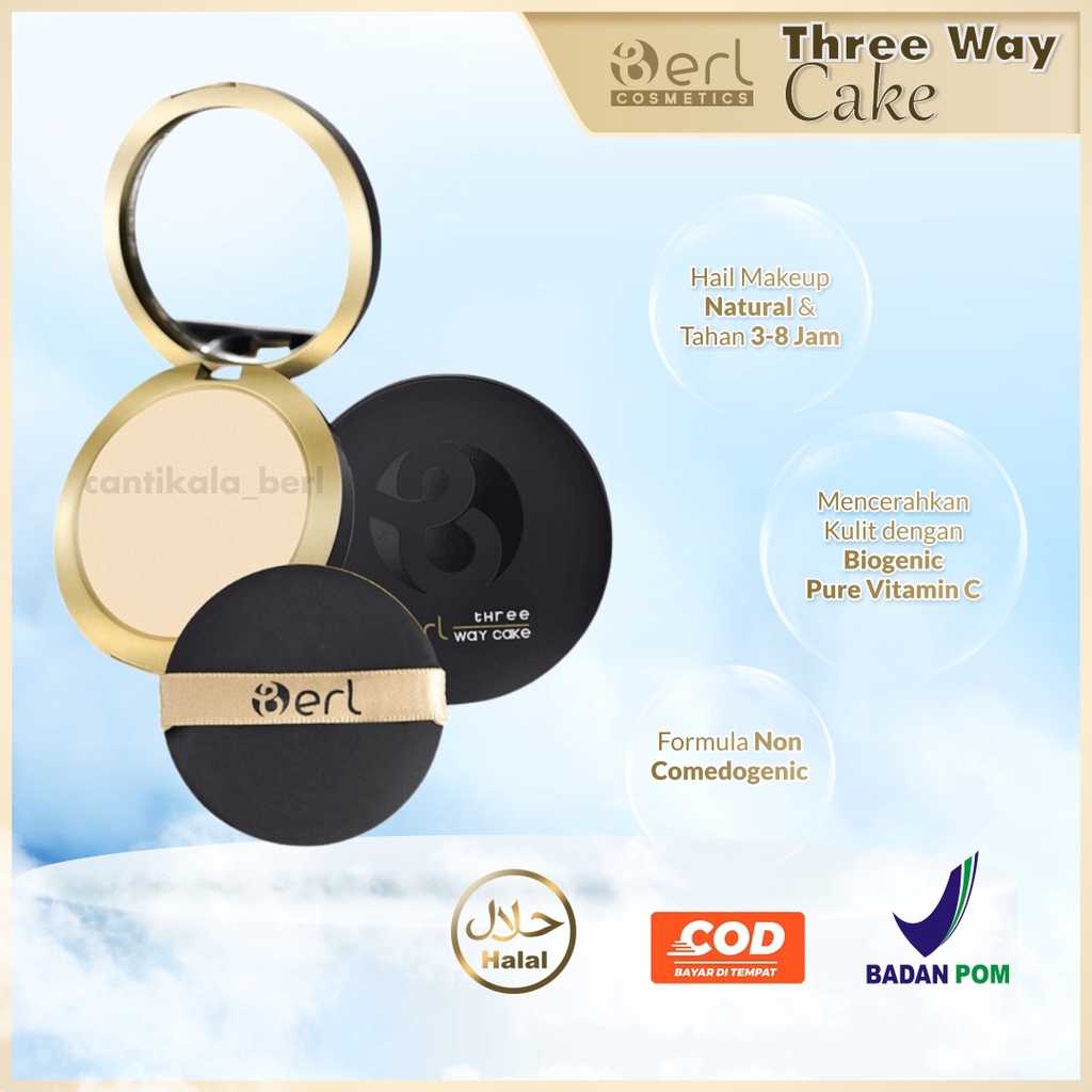- B Erl Three Way Cake Berl Cosmetics Kosmetik Skincare Make Up Pupur Bedak Tabur Padat Peningkat Kulit Wajah Muka Cerah Putih Glowing Alami Atasi Penuaan Dini Keriput Kerutan Kusam Komedo Noda Rona Flek Hitam Bekas Jerawat 100% Ampuh Murah Resmi BPOM