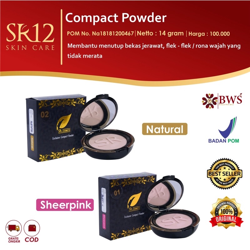 - Bedak SR12 Skincare Skin Care Compact Powder Natural Pupur Padat Tabur Basah Atasi Bekas Jerawat Jrawat Flek Flak Hitam Noda Rona Komedo Kulit Berminyak Peningkat Wajah Muka Cerah Bersih Putih Glowing Gelowing Ampuh Tahan Air 100% Resmi Original BPOM
